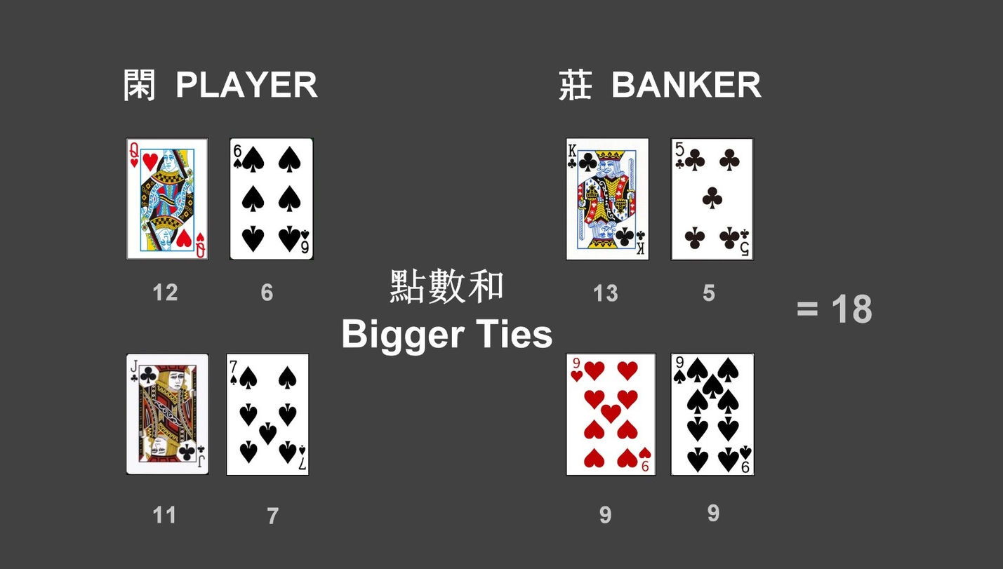 庄、閒兩家,首兩只牌相加比大小,最接近26點為贏,或者是否會出現和局。